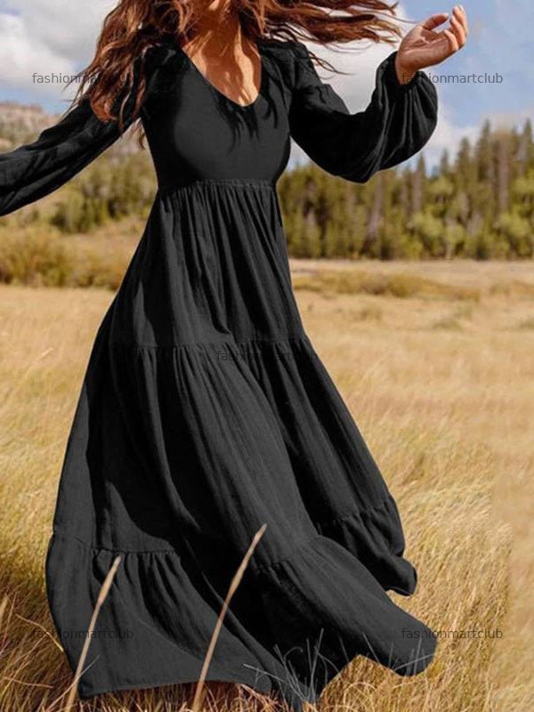 Women's Long Sleeve V-neck Solid Color Maxi Dress