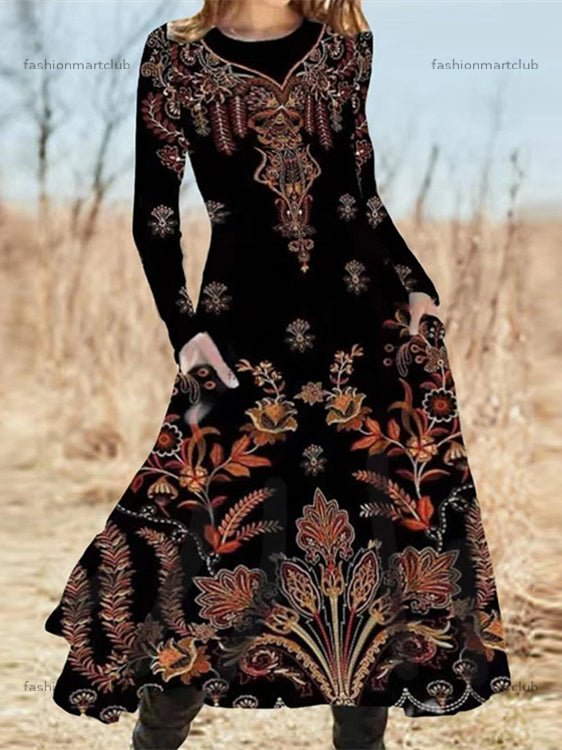 Women's Long Sleeve Scoop Neck Graphic Midi Dress