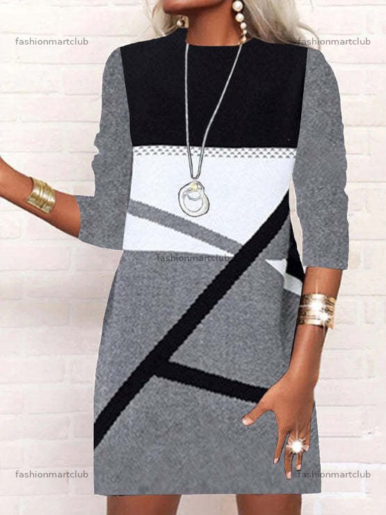Women's Long Sleeve Scoop Neck Graphic Midi Dress