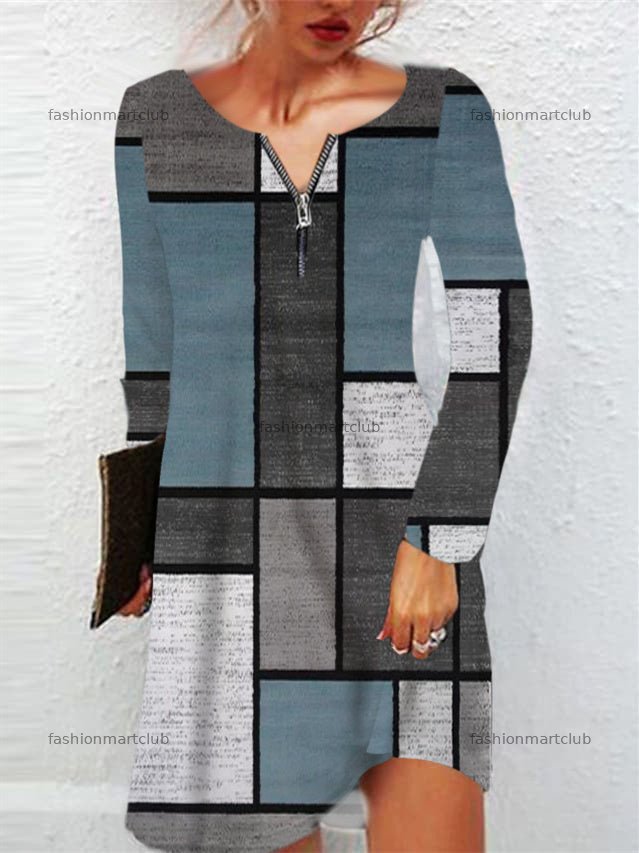 Women's Long Sleeve V-neck Graphic Midi Dress
