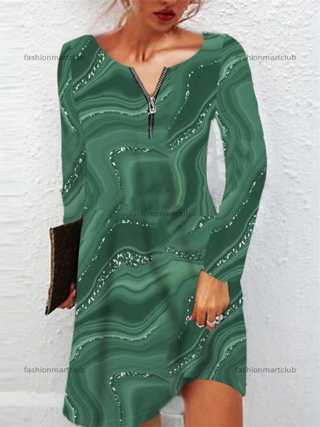 Women's Long Sleeve V-neck Graphic Midi Dress