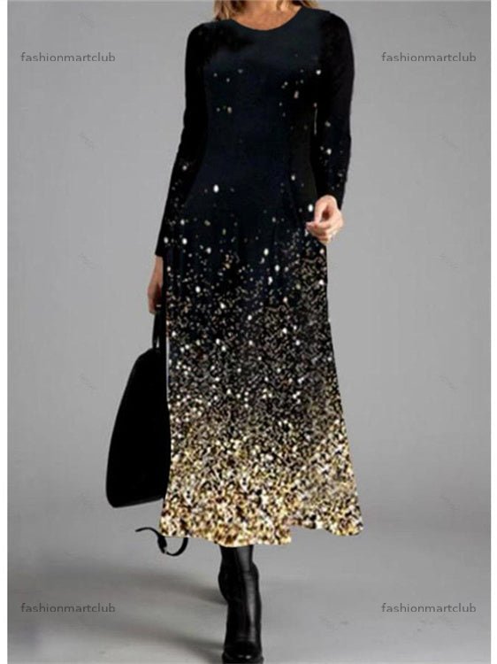 Women's Long Sleeve Scoop Neck Graphic Maxi Dress