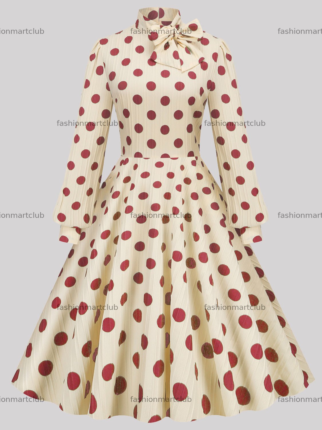 Women's Long Sleeve Turtle Neck Graphic Polka Dot Midi Dress