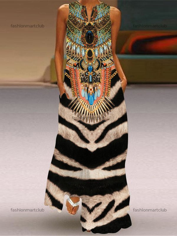 Women's Sleeveless V-neck Graphic Maxi Dress