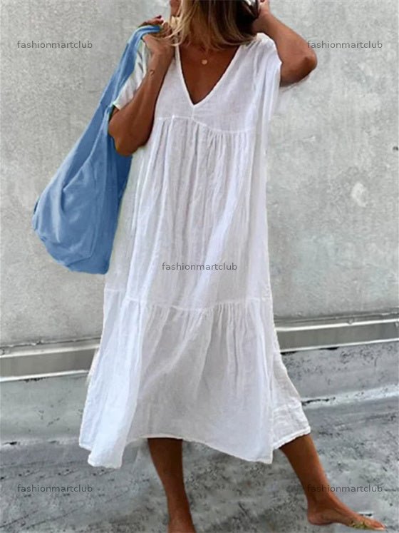 Women's Short Sleeve V-neck Solid Color Maxi Dress