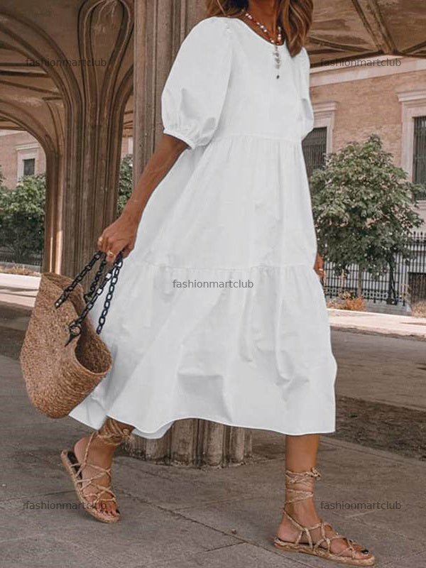 Women's Half Sleeve Scoop Neck Solid Color Midi Dress