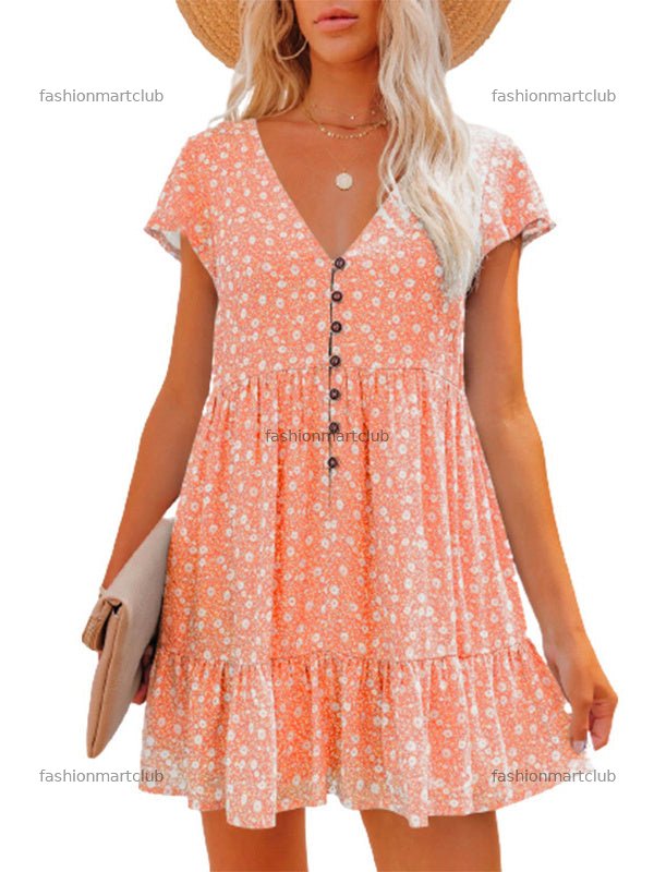 Women's Polka Dot Short Sleeve V-neck Mini Dress