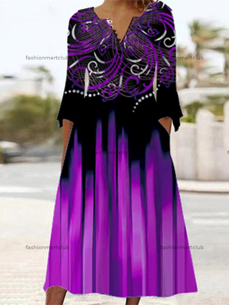 Women's Half Sleeve V Neck Casual Floral Printed Midi Dresses
