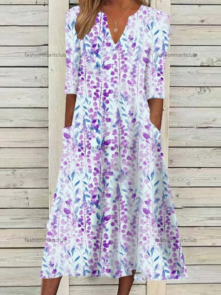 Women's Casual Dress Summer Dress Print Dress Leaf Floral Patchwork Pocket V Neck Midi Dress Active Fashion Outdoor Street Half Sleeve