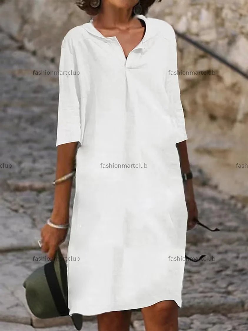 Women's Solid Color V-Neck Half Sleeve Maxi Dress