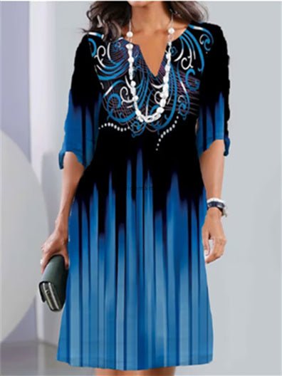 Women's Casual Dress Print Dress Floral Geometric Print V-Neck Midi Dress