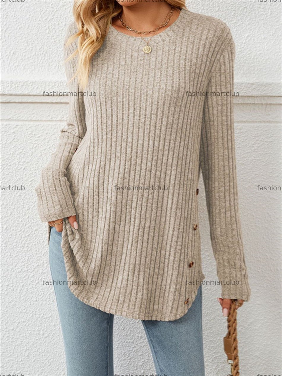 Women's Button Solid Color Stitching Scoop Neck Long Sleeve Sweater Top