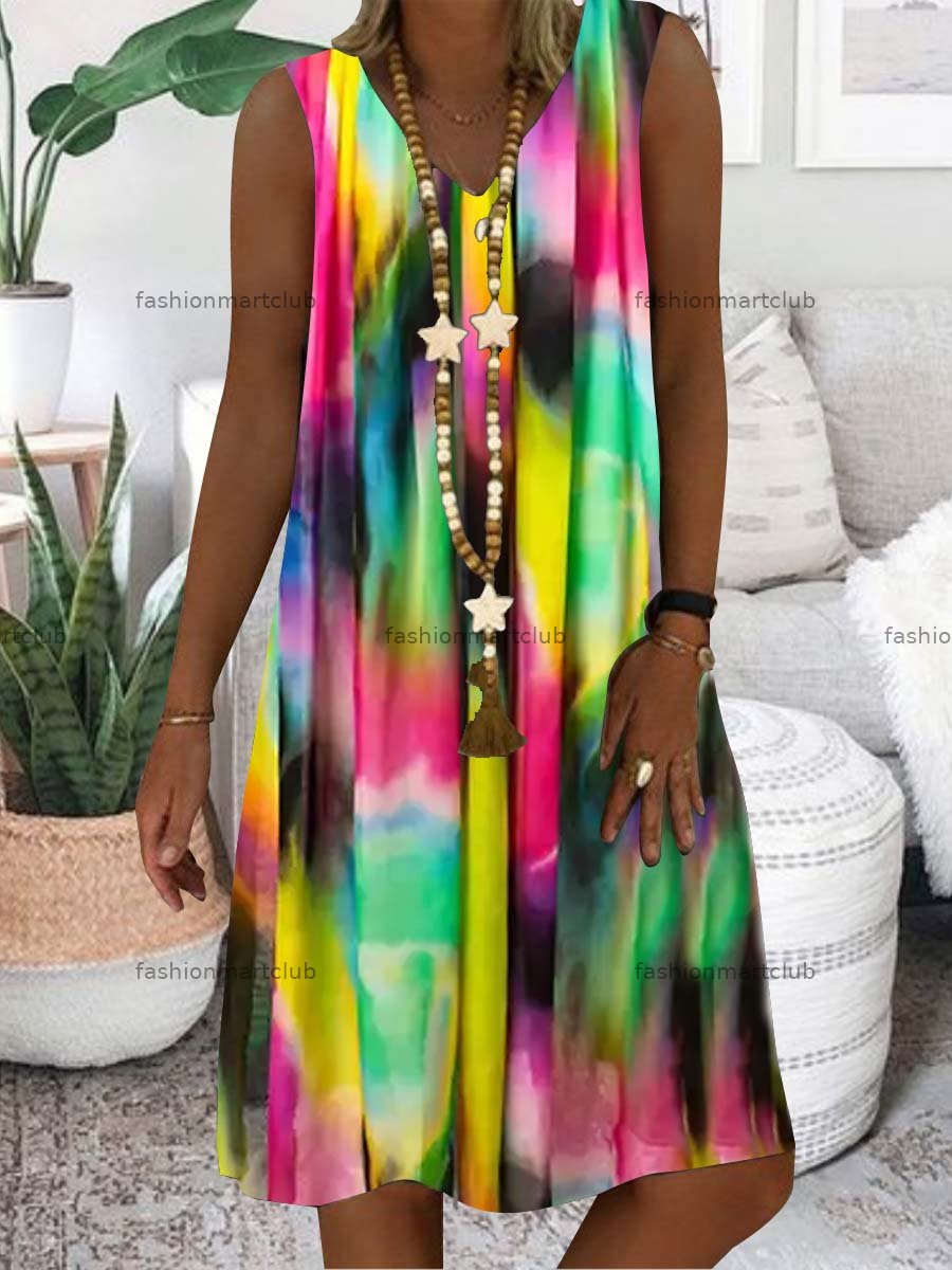 Women Green Sleeveless V-neck Printed Midi Dress