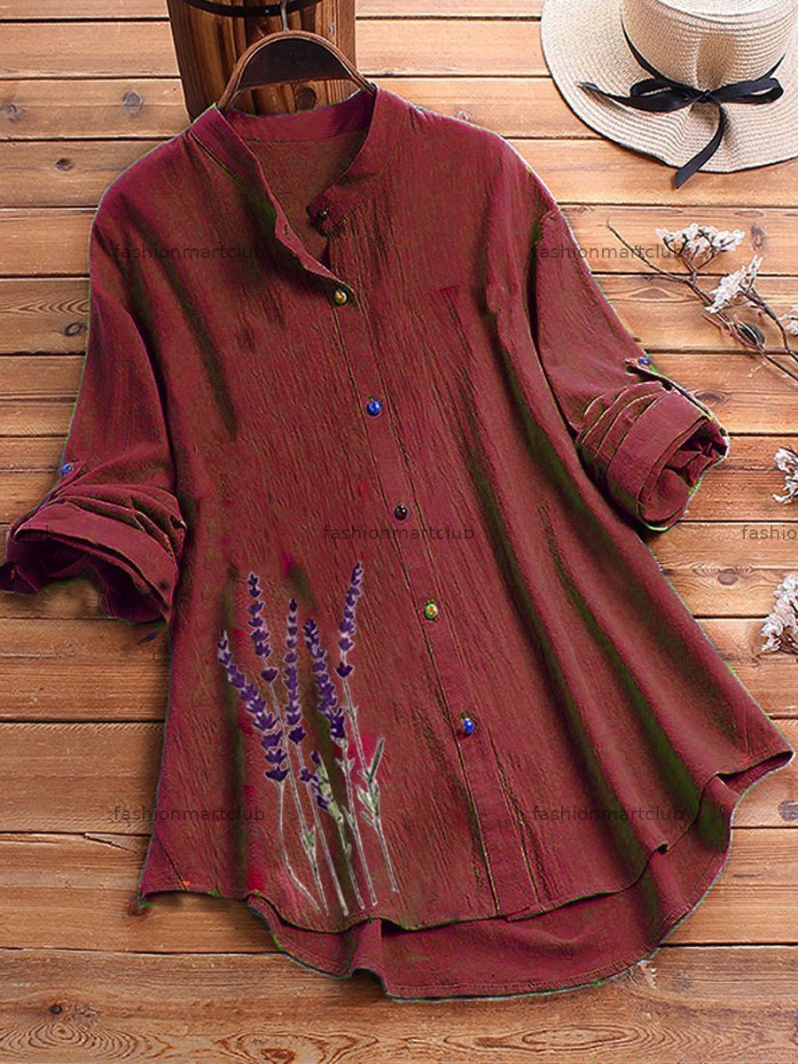 Women'S Cotton Linen Casual Floral Print Shirt