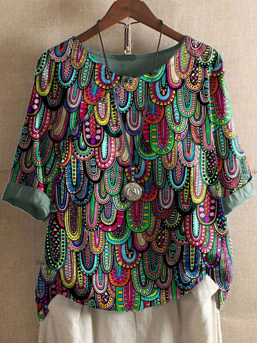 Women's Printed Round Neck Short Sleeve Slant Neck Top T-Shirt