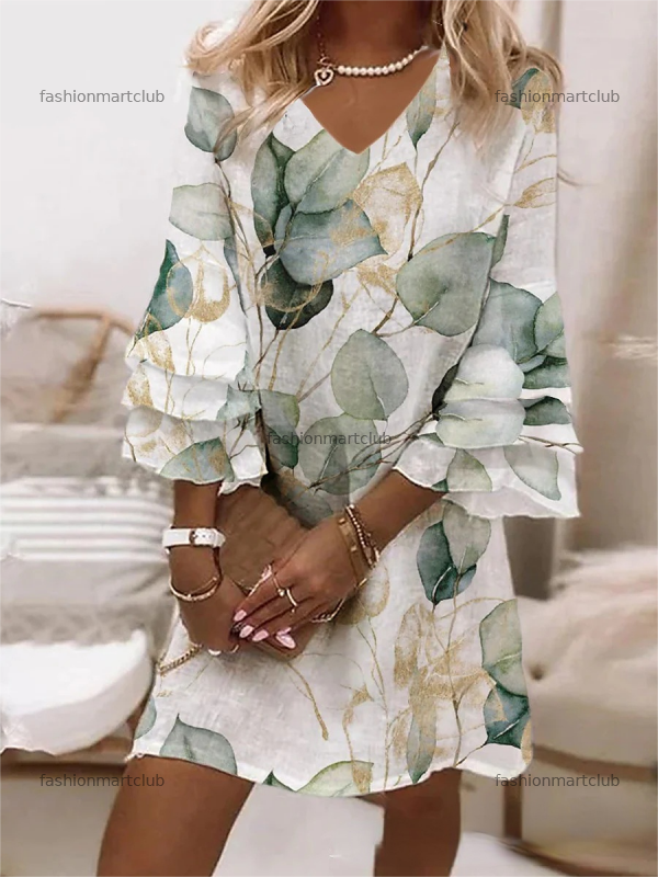 Women's Casual Dress Summer Dress Print Dress Graphic Leaf Print V Neck Flared Sleeve