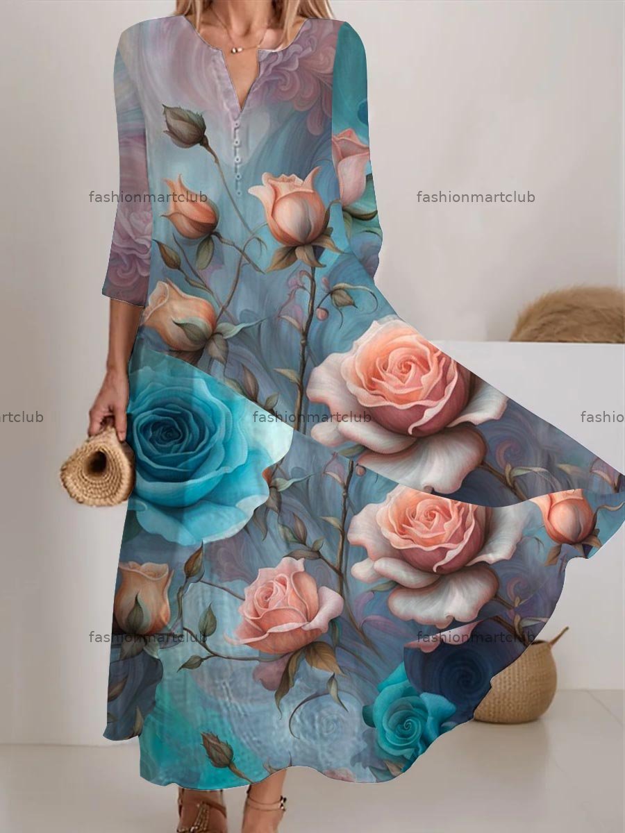 Women's Floral Pattern Flowy Dress