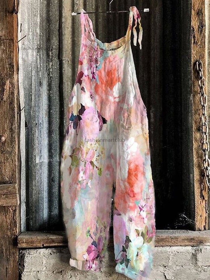 Women'S Flower Print Sleeveless Casual Jumpsuit