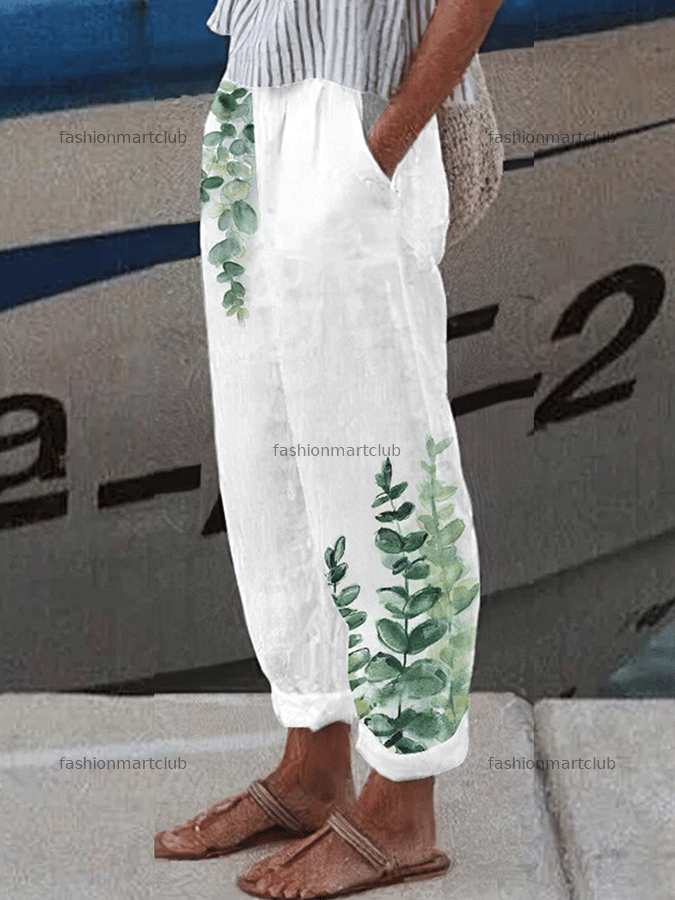 Women's Leisure Leaf Printed Pocket Casual Pants