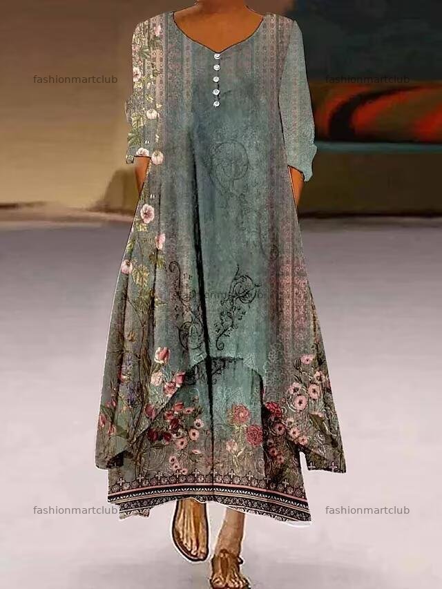 Printed Long Sleeve Dress