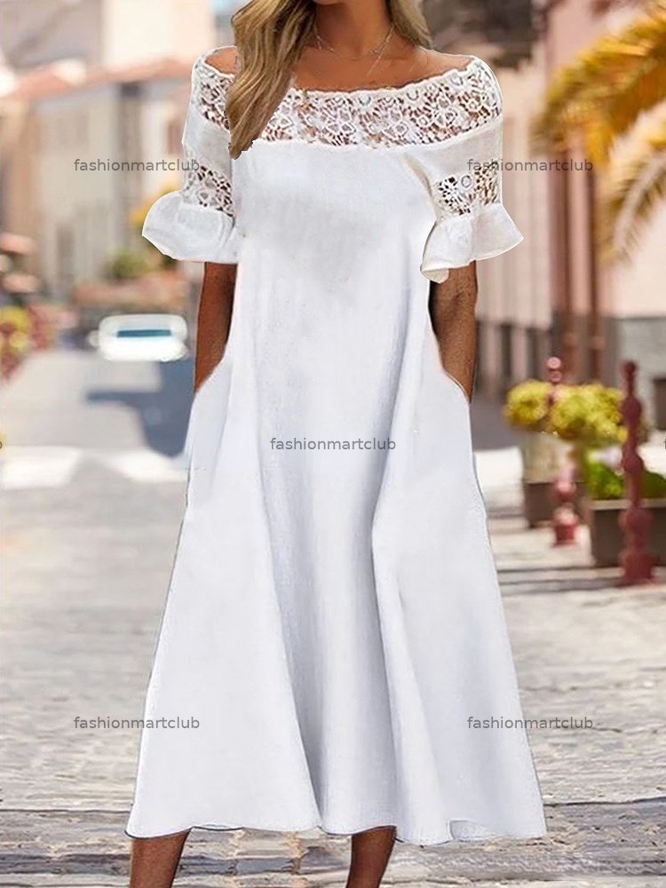 Women's One Line Neck Lace Sleeve Short Sleeve Dress