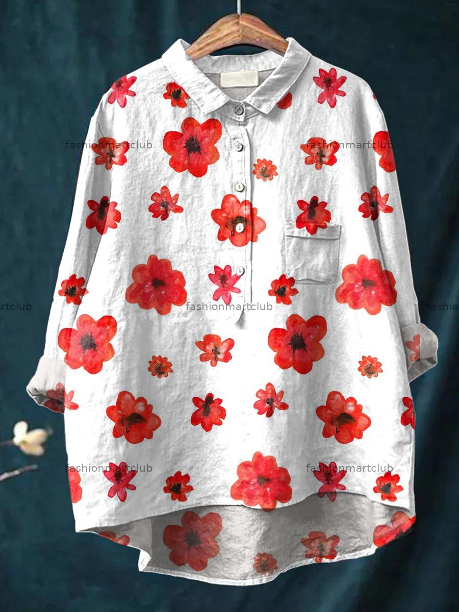 Women's Poppy Pattern Casual Cotton And Linen Shirt