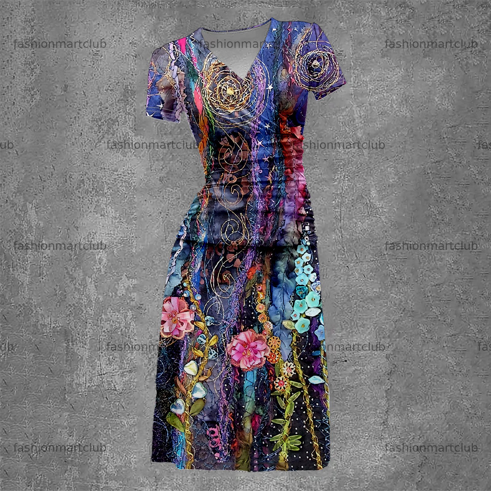Women's Colourful Flowers Printing Vintage Two-Piece Maxi Dress