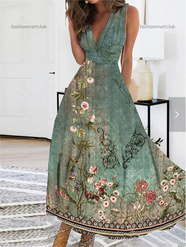 Women's High Waist Sleeveless Printed Tank Top Dress
